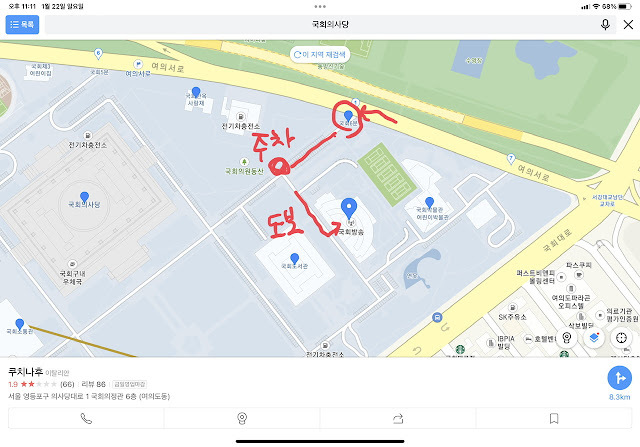 3) 입구 및 국회건물에서 쿠치나후 들어가는 법